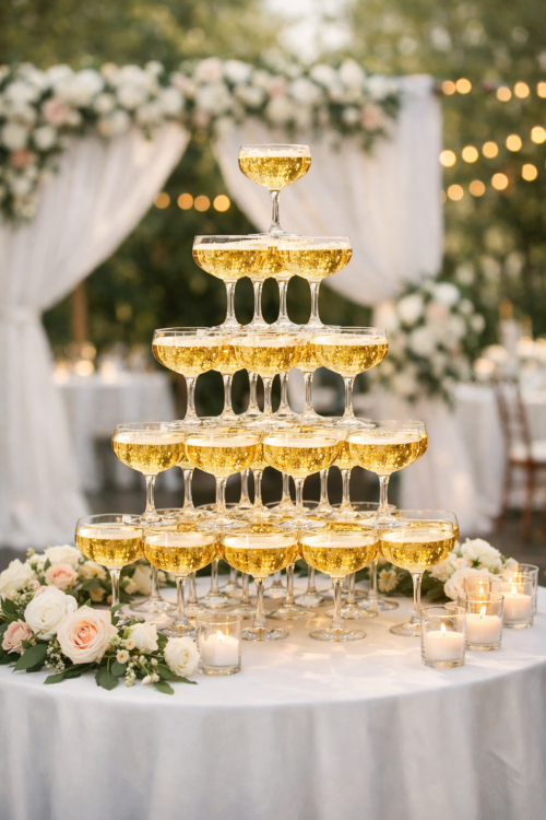 Miete dir für dein Fest unsere Sekt-/Champagnerschalen für deinen Empfang oder deinen Champagner-Tower